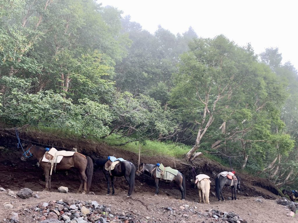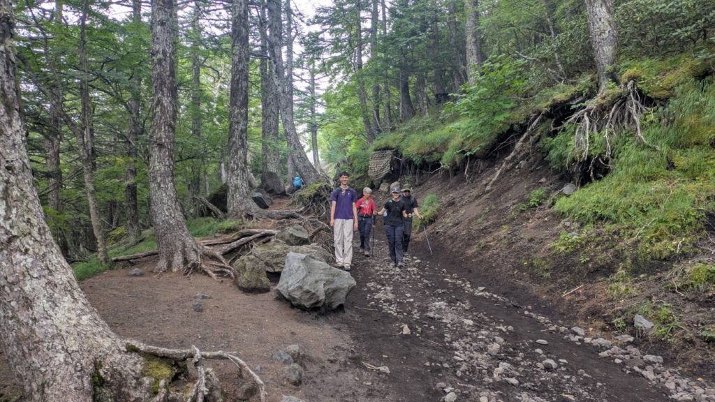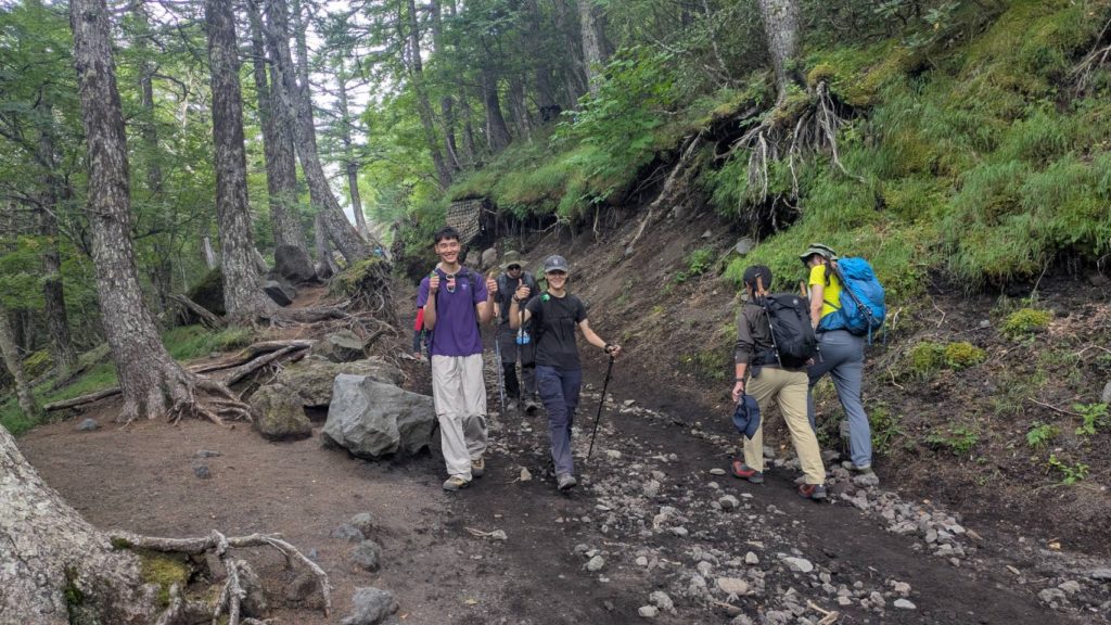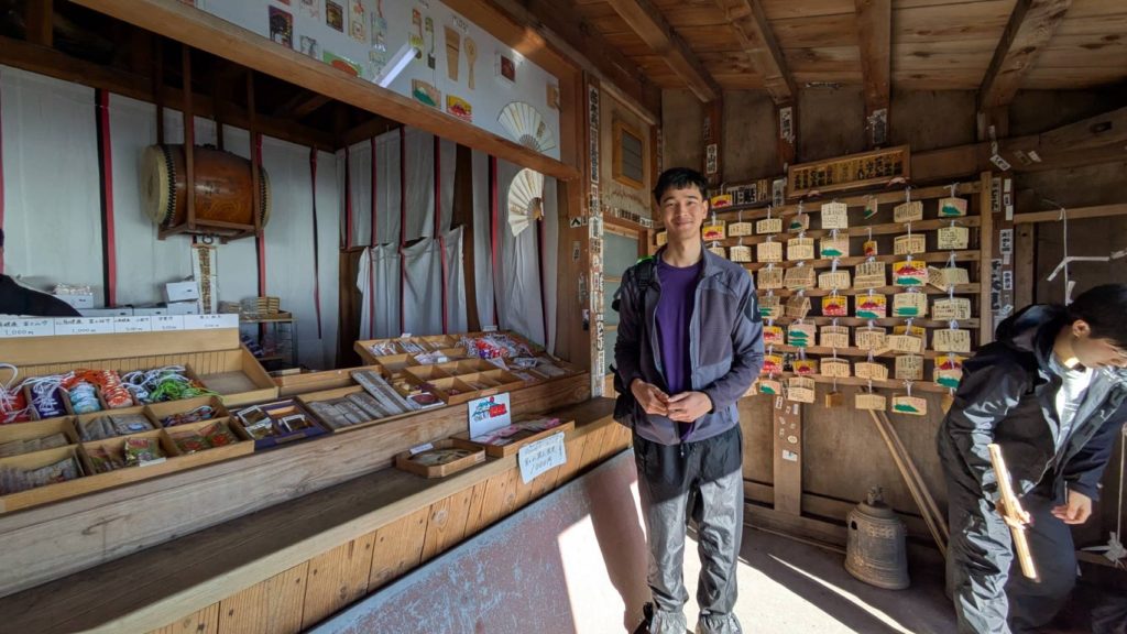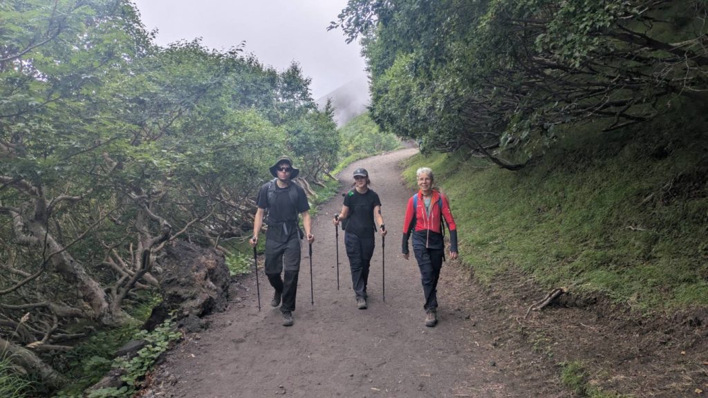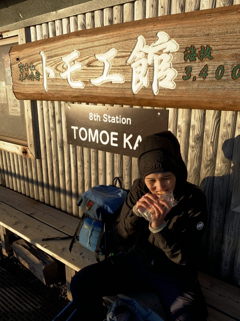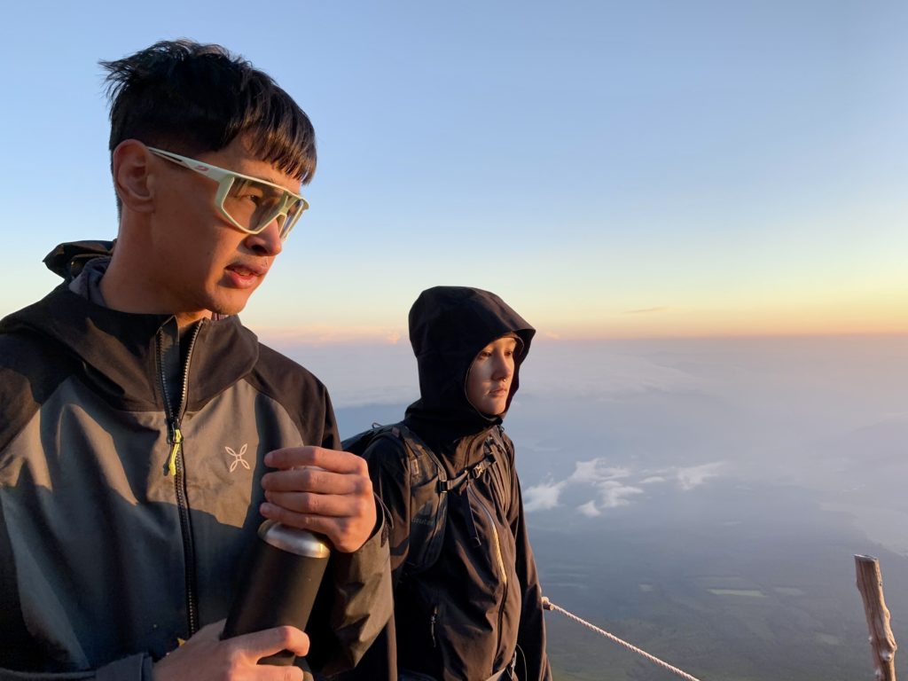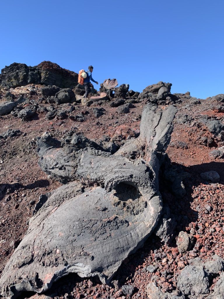 De l’autre côté du cratère, le point le plus haut du mont Fuji: KengamineLe versant noir tout lisse en apparence est une n des cratères du volcan (éruption relativement récente datant de la période Edo?)Au fond à gauche, le point le plus haut du mont Fuji: KengamineSommet (10e étape)
